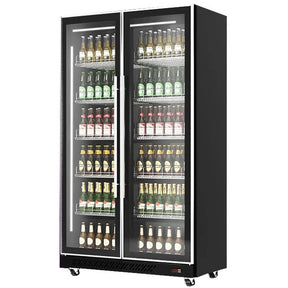 Combisteel Koelkast Zwart | 758L | 2 Glasdeuren | 0°C/+10°C | Geforceerd | 1100x600x1980(h)mm | 7526.0010