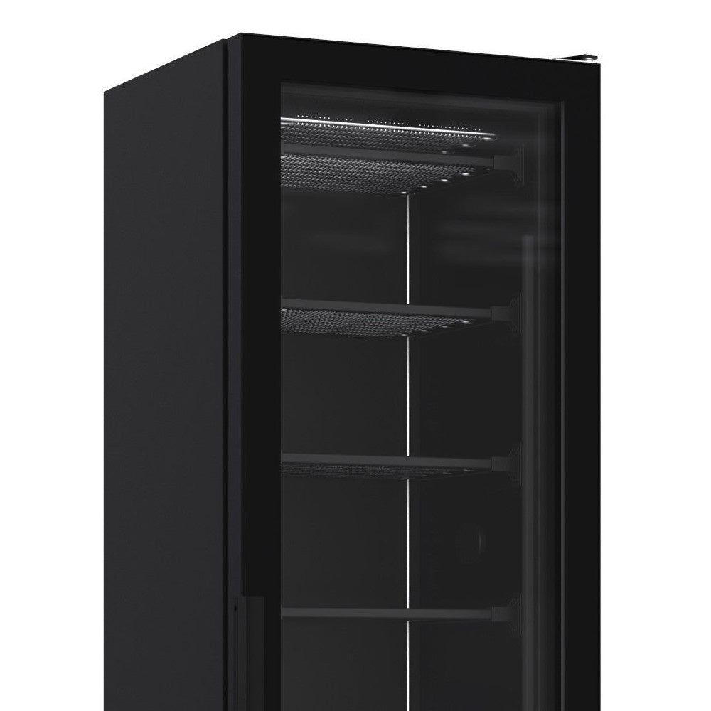 Combisteel Glasdeur Vrieskast | Energiezuinig | Smal Model | Zwart | 221L | -18°C/-24°C | Statisch | 494x521x1915(h)mm | 7464.0052