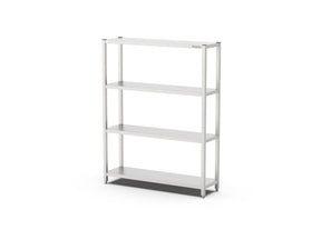 Deze zeer sterke RVS voorraadrek is makkelijk inklaar te zetten en is opgebouwd uit 40x40mm profielen met schappen die extra verstevigingen hebben onder elk schap.