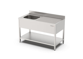 RVS Spoeltafel met bodemschap | Demontabel | 2 Bak Links | Opstaande rand | 1800x700x900(h)mm