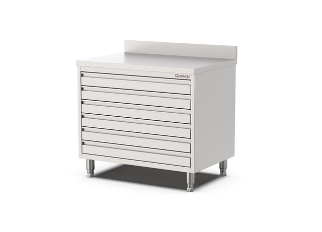 RVS Horeca Werkbank met 6 laden | Opstaande rand | 1000x700x900mm
