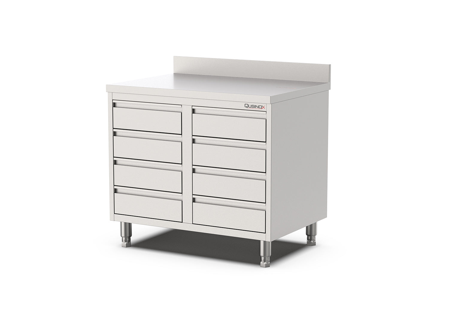 Deze professionele werktafel met laden van Qusinox is opgebouwd uit stevige constructie.